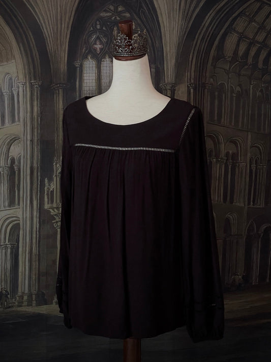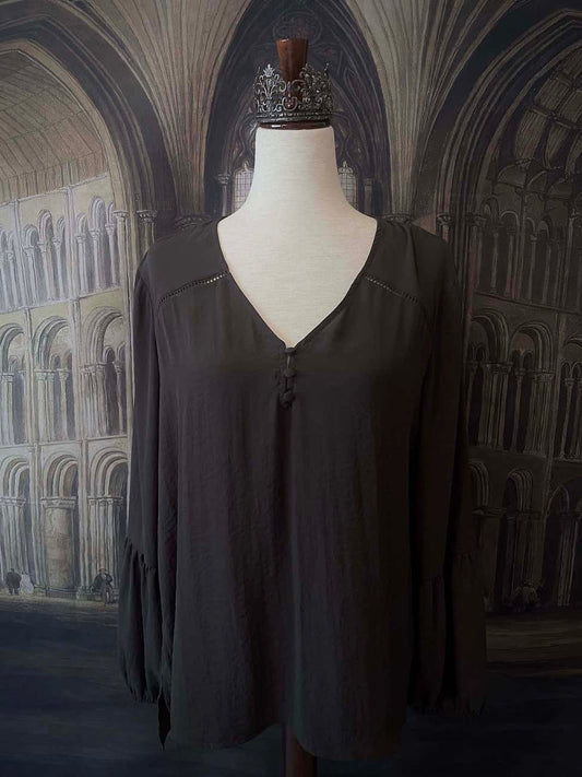 Historically Inspired Black Bishop Sleeve Chemise Blouse - Size L-XL