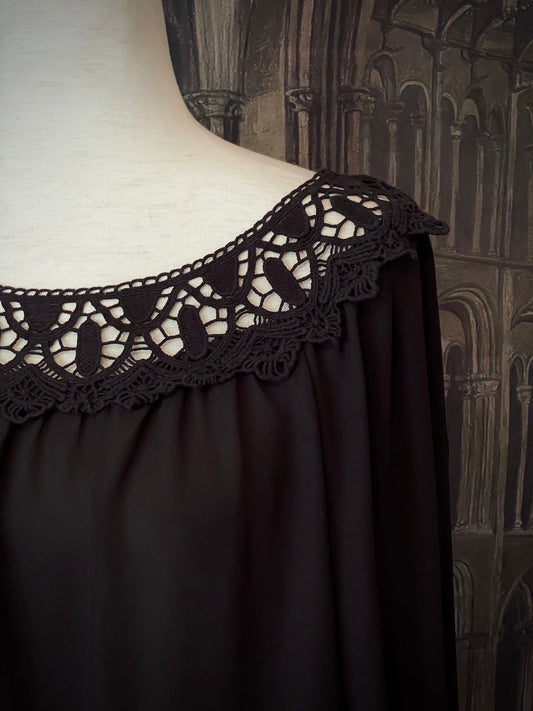 Historically Inspired Black Crochet Neckline Chemise Blouse - Size L-XL