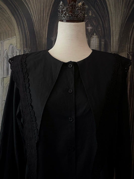 Historically Inspired Gothic Dagger Collar Blouse in Black