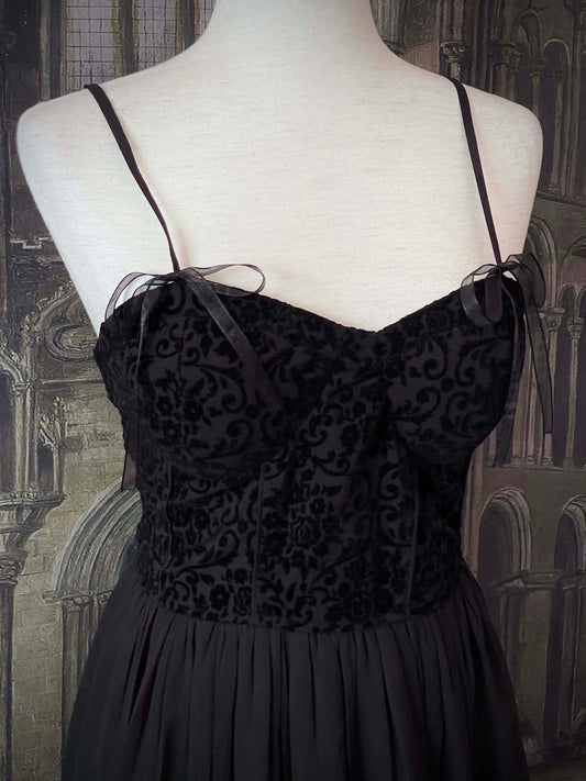 Historically Inspired Gothic Black Ornate Bustier Mini Dress - Size M-L
