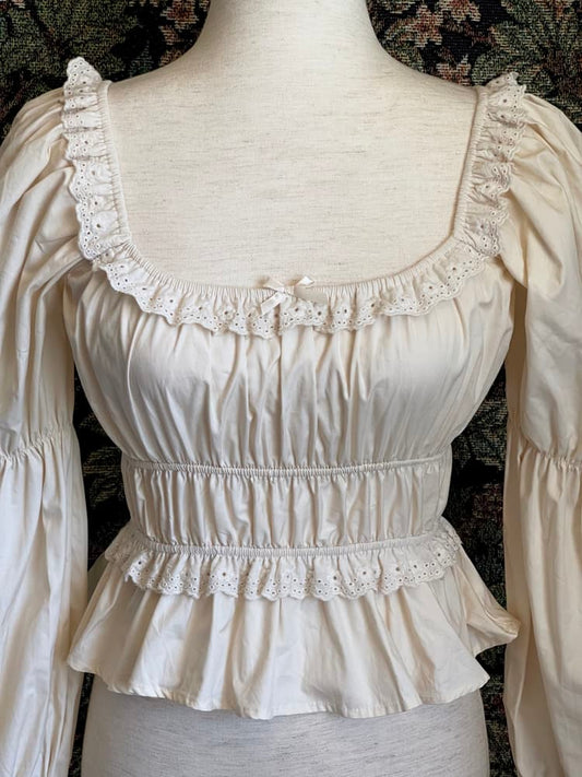 Historically Inspired Smocked Blouse with Virago Sleeves in Ivory Cotton