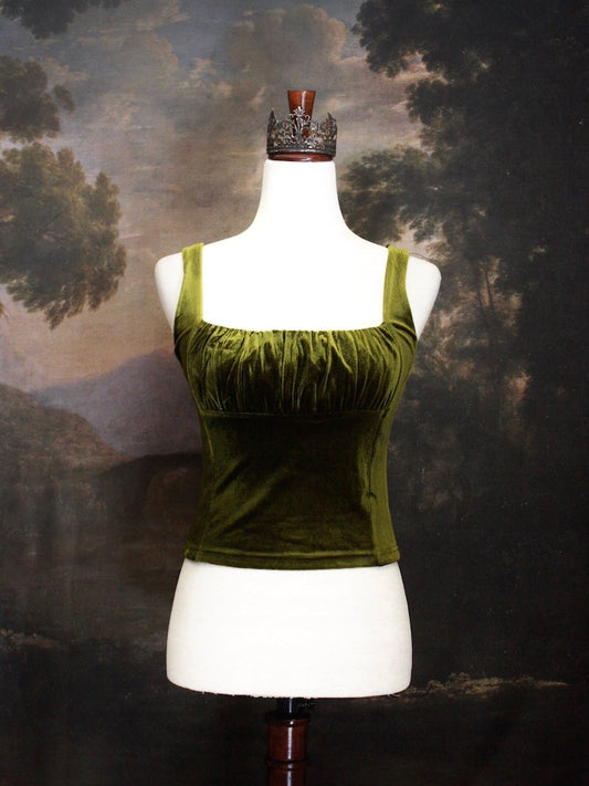 Historically Inspired Velvet Milkmaid Bustier Top in Moss Green