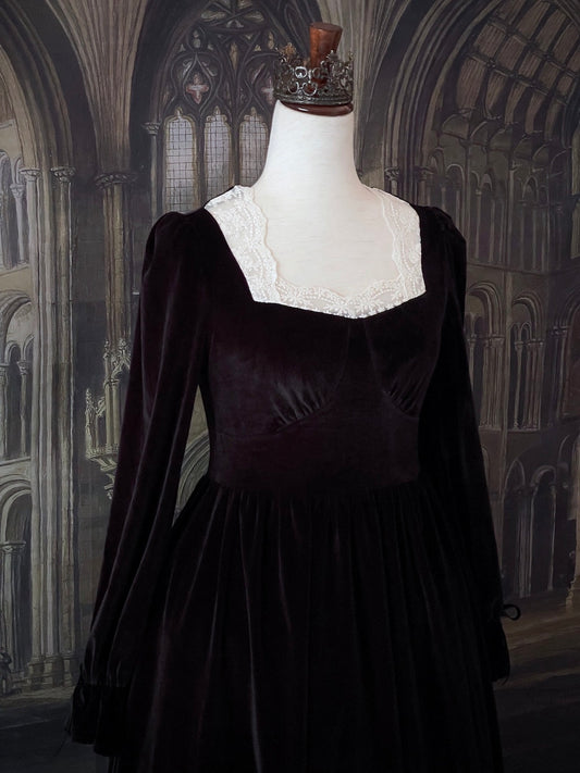 Historically Inspired Structured Velvet Gown in Gothic Black