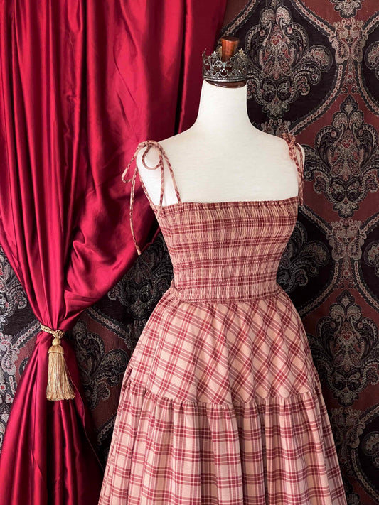 Historically Inspired Tartan Plaid Tiered Dress in Rust x Burgundy