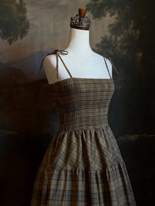 Historically Inspired Tartan Plaid Tiered Dress in Brown