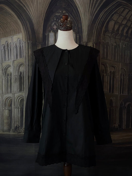 Historically Inspired Gothic Dagger Collar Tunic Blouse in Black