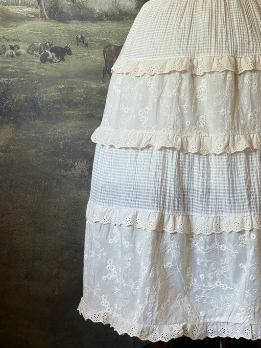 Countryside Cottage Floral Tiered Maxi Skirt in Ivory/Cream