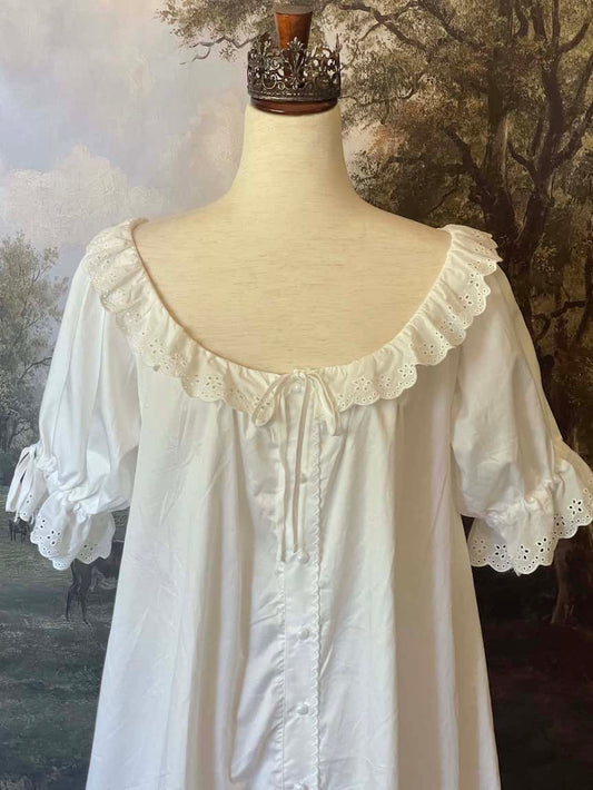 Historically Inspired Brushed Cotton Chemise Mini-Dress in White