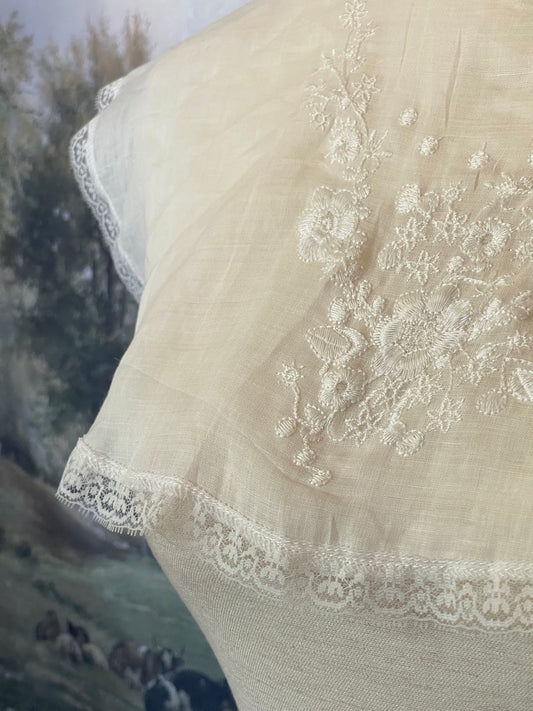 Edwardian Inspired Floral Embroidery Linen Capelet Collar in White
