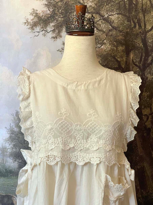 Edwardian & Victorian Inspired Floral Embroidered Cotton Vest in Ivory