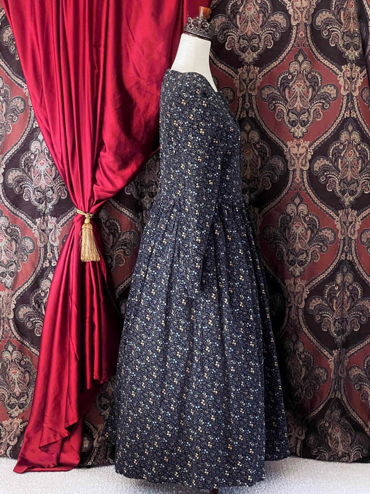 Vintage Laura Ashley Victorian-Inspired Blue Floral Corduroy Prairie Dress - Size M