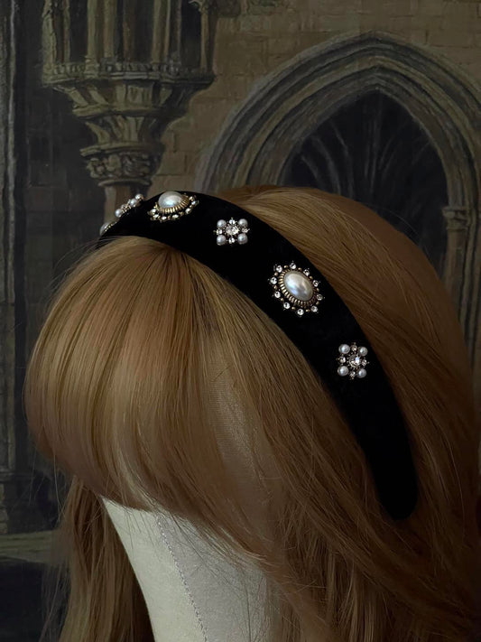 Medieval & Renaissance Inspired Jeweled Headband in Black Velvet