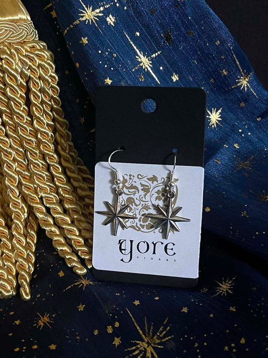 Handmade Medieval Inspired North Star Earrings in Aged Silver