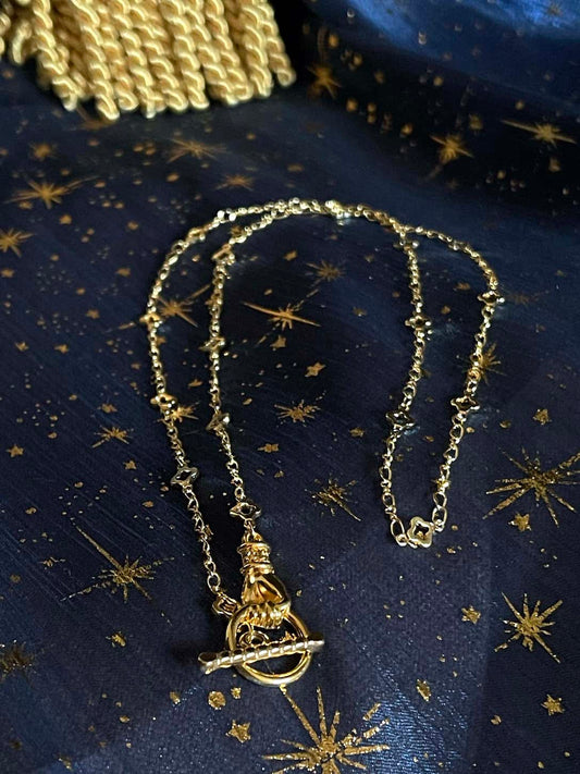Handmade Medieval Hand Toggle Clasp Necklace in Gold