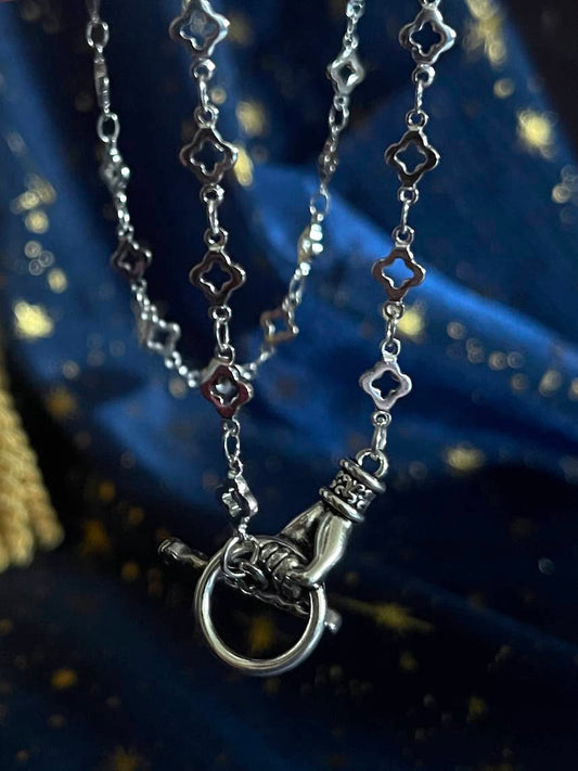 Handmade Medieval Hand Toggle Clasp Necklace in Silver