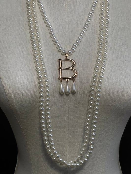 Tudor Inspired Anne Boleyn "B" Pearl Necklace