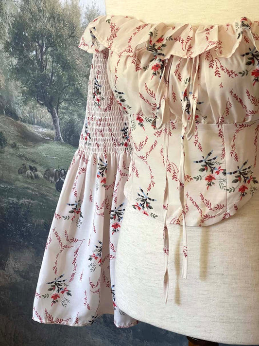 Historically Inspired Sheer Smocked Chemise Dress in Ivory Floral Cotton