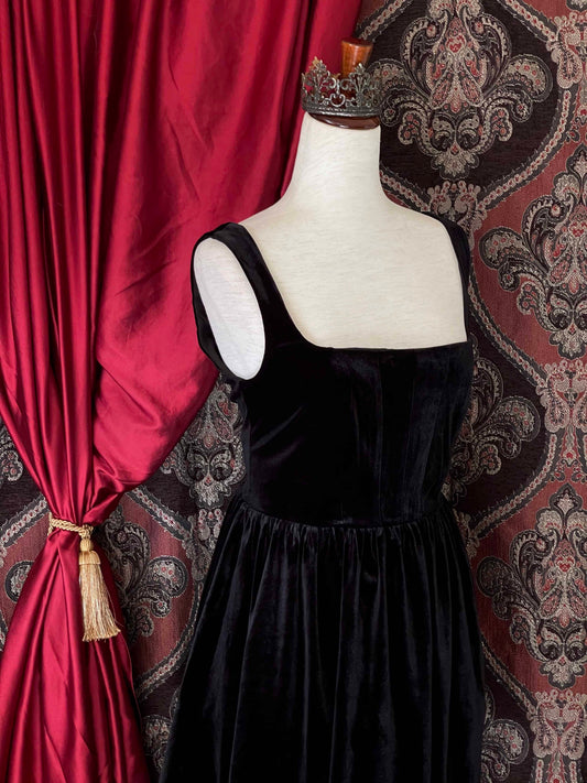 Renaissance & Tudor Era Pleated Velvet Mini Dress in Gothic Black
