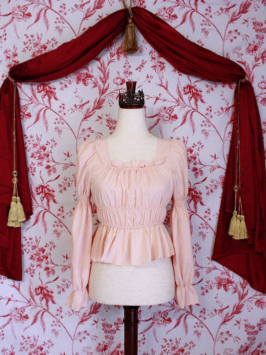 Renaissance Inspired Smocked Blouse with Juliet Sleeves in Peachy Pink