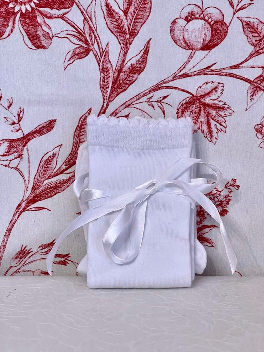 Historically Inspired Cotton Knee-High Socks with Ribbon Lacing in White