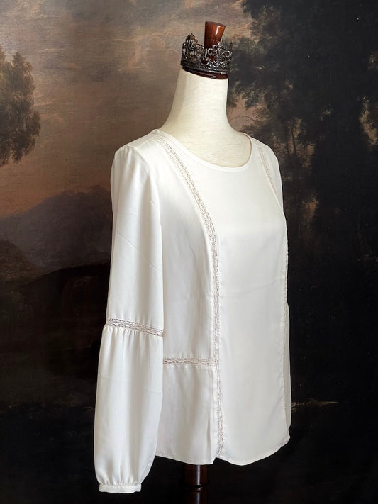 Historically Inspired Lace Inset Bishop Sleeve Blouse in Ivory - Size S-M