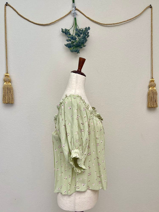 Victorian Inspired Mint Green Floral Off-Shoulder Peasant Blouse